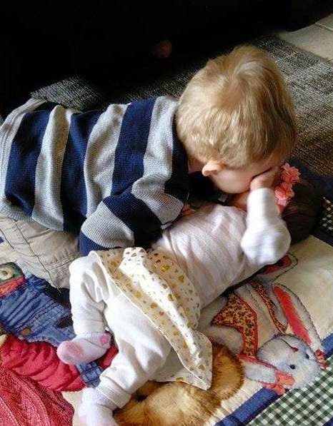 These pictures were from a few weeks ago. The first time that he really held her "on his own"